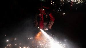 Anoche, las calles se llenaron de chispas, humo y miradas encendidas. Los correfocs no son solo un espectáculo visual; son una tradición que conecta pasado y presente. Demonios danzando entre llamas, pirotecnia controlada y un público que no observa desde lejos, sino que participa, que siente el calor, que forma parte del ritual.