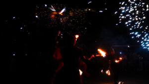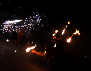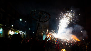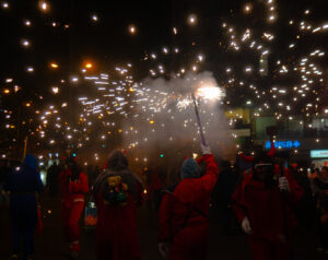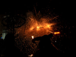 Anoche, las calles se llenaron de chispas, humo y miradas encendidas. Los correfocs no son solo un espectáculo visual; son una tradición que conecta pasado y presente. Demonios danzando entre llamas, pirotecnia controlada y un público que no observa desde lejos, sino que participa, que siente el calor, que forma parte del ritual.