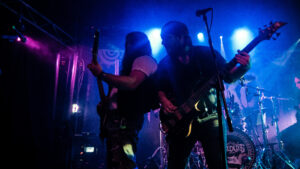 Acompañados de un gran despliegue visual —trajes que evocan seres mitológicos, banderas que representan culturas extintas y rituales ancestrales—, los zaragozanos ofrecieron un viaje histórico por la tradición celta e íbera, culminando con su ya emblemática canción “Hidromiel”, un cierre épico y perfecto para una noche de folk metal.
